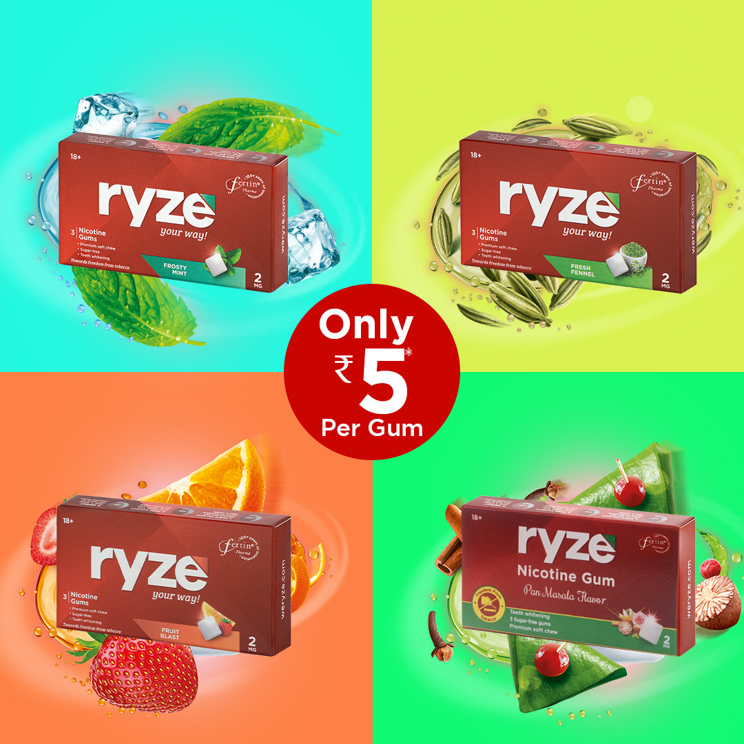 RYZE gum is a WHO-approved & sugar-free formulation that provides effective relief from cravings associated with